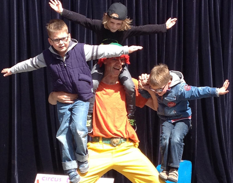 Een interactieve voorstelling met muziek, éénwielers, jongleren, dieren, evenwichtskunsten èn een glansrol voor het publiek!