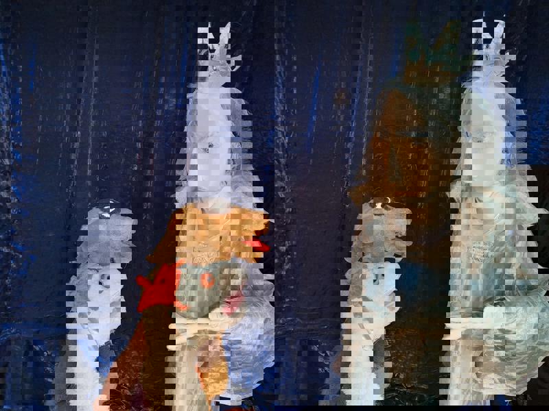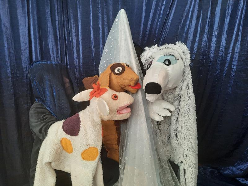 Theater Compagnie Alice maakt voorstellingen met grote poppen en muziek over natuur en milieu.